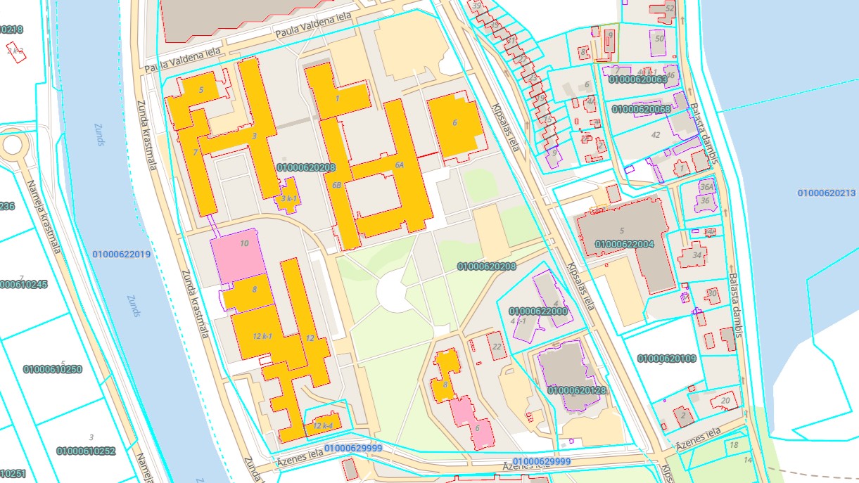 Visu ar sensoriem aprīkoto ēku izvietojums dabā parādīts 2. attēlā. Projekta aktivitāšu rezultātā katras RTU ēkas katrā telpā ir uzstādīts vismaz viens AS “SAF Tehnika” izstrādāts un ražots gaisa kvalitātes sensors, kas mēra ogļskābās gāzes koncetntrāciju, gaisa temperatūru, gaisa relatīvo mitrumu un atmosfēras spiedienu. Kopumā projekta ietvaros līdz šim ir uzstādīts 591 Aranet radio tehonoloģijas sensors un 1994 mioty™ protokola sensori.